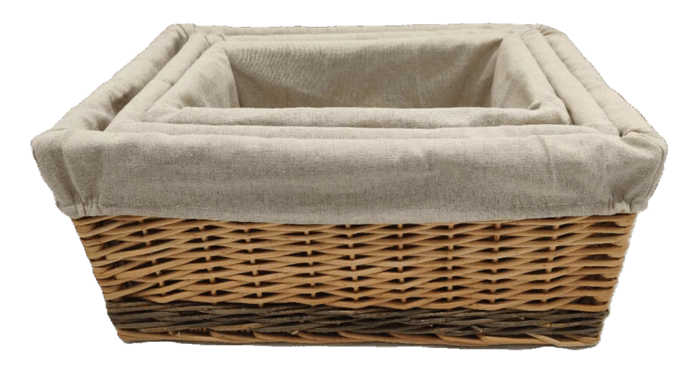 Buff Storage Basket S/3 with rustic stripe, with Linings
